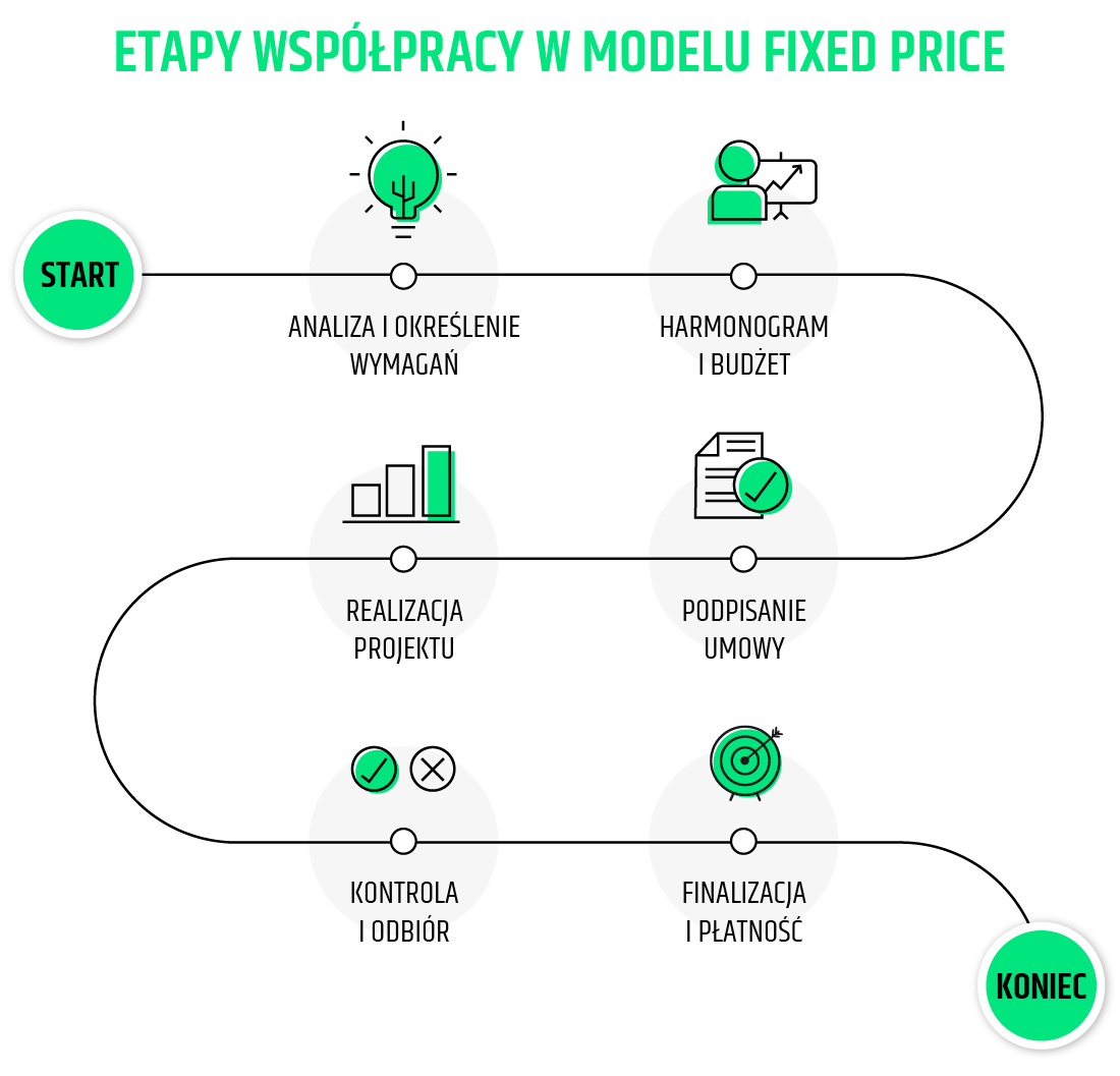 Model Fixed Price jest jedną z form rozliczeń w projektach IT, w której cena za realizację projektu jest ustalona na początku i pozostaje niezmienna niezależnie od czasu i zasobów potrzebnych do jego zakończenia.