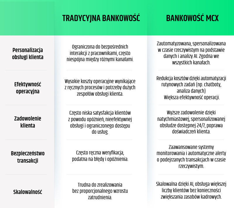 W efekcie MCX staje się nieodzownym elementem strategii przyszłościowej bankowości, zapewniając instytucjom finansowym możliwość skutecznej rywalizacji na dynamicznie zmieniającym się rynku.