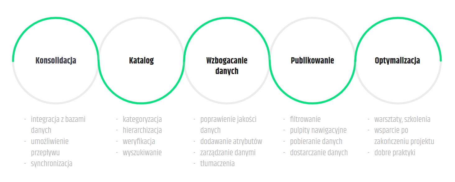 - integracje z systemami zewnętrznymi (np. MDM, ERP, e-commerce, CMS),
