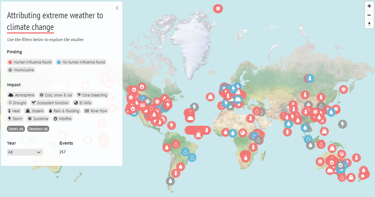 Carbon Brief has created a very readable map of the extreme weather phenomena caused by climate change: