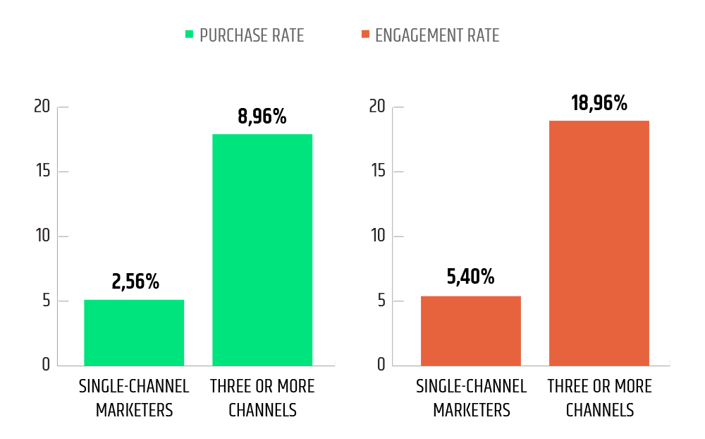 Brands that embrace omnichannel witness up to 18.96% of engagement. Impressive, when you consider that the figure is only 5.4% for a single channel strategy.