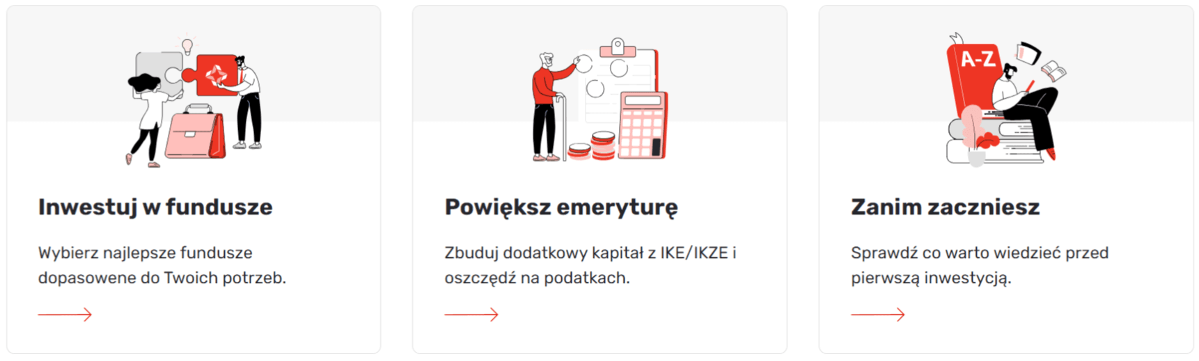 - Sale of products tailored to these needs - together with our investors, we have separated the navigation individually: funds, products enabling investments for savings or making savings for retirement, and solutions that suit companies, such as PPK, Employee Pension Plan (PPE), etc.