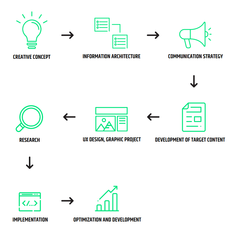 Large portals for big companies are undertakings that may take 8-12 months, engage 30-40 people and require relevant methodology. In 21 years we have created our original battle-tested process which incorporates all portal building aspects: from the creative idea, through information architecture, communication strategy, working out target content, UX project and graphic projects and research, right to implementation, own CMS, optimisation and development.